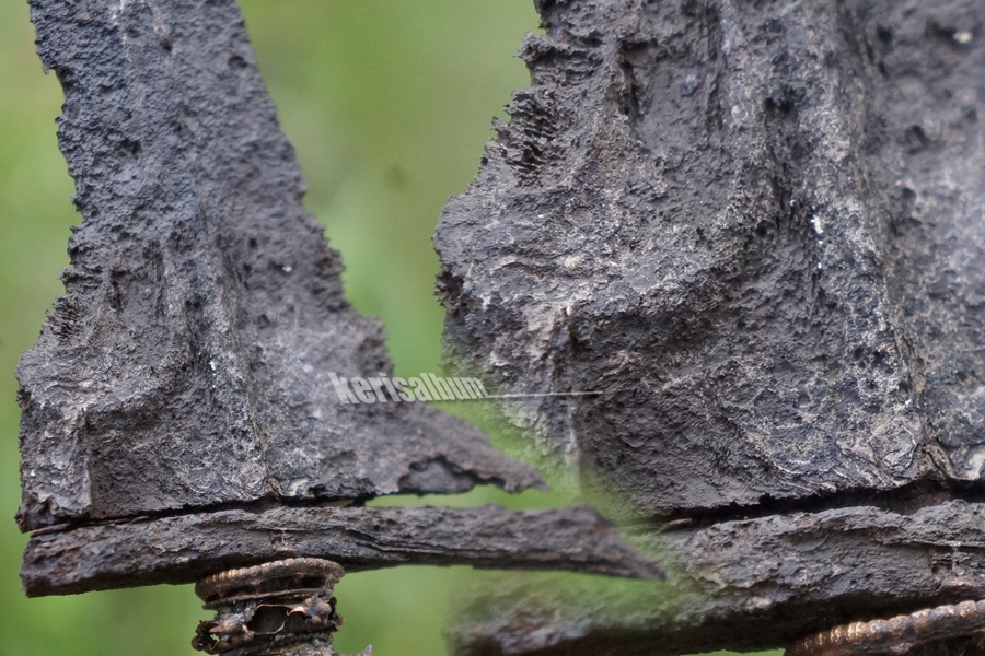 Foto keadaan kotor ada di bawah, Silahkan dicermati wilahnya; lipatan tempanya lengkap unthuk cacing korosi alami, materi besi kuno, dan sisa gelembung patina alami.